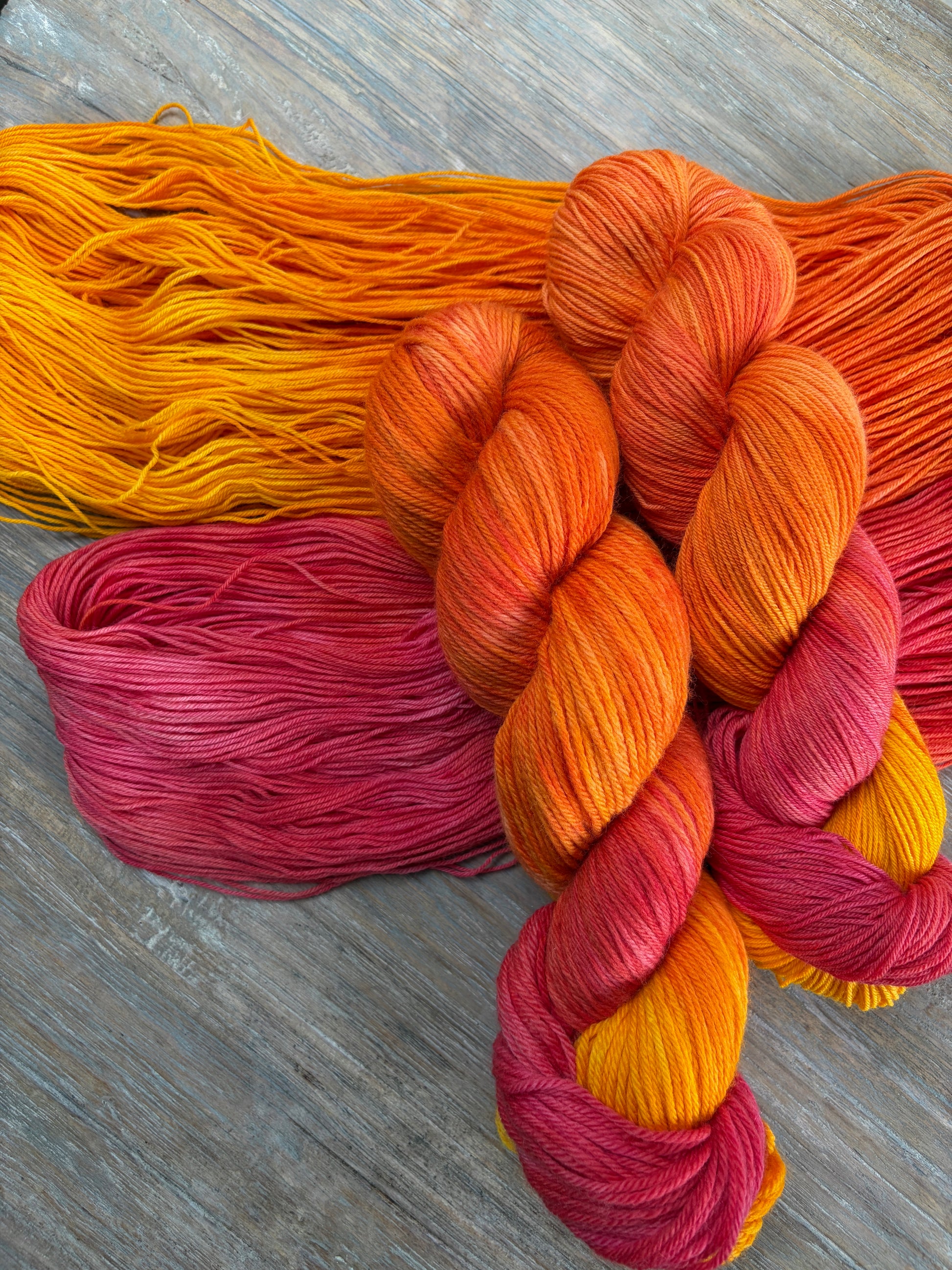 All my yarns are hand-dyed in small batches, which means no two skeins are exactly the same, even within the same batch or colorway. If you're planning a larger project, it's best to order enough at once and alternate skeins for the most even result.
